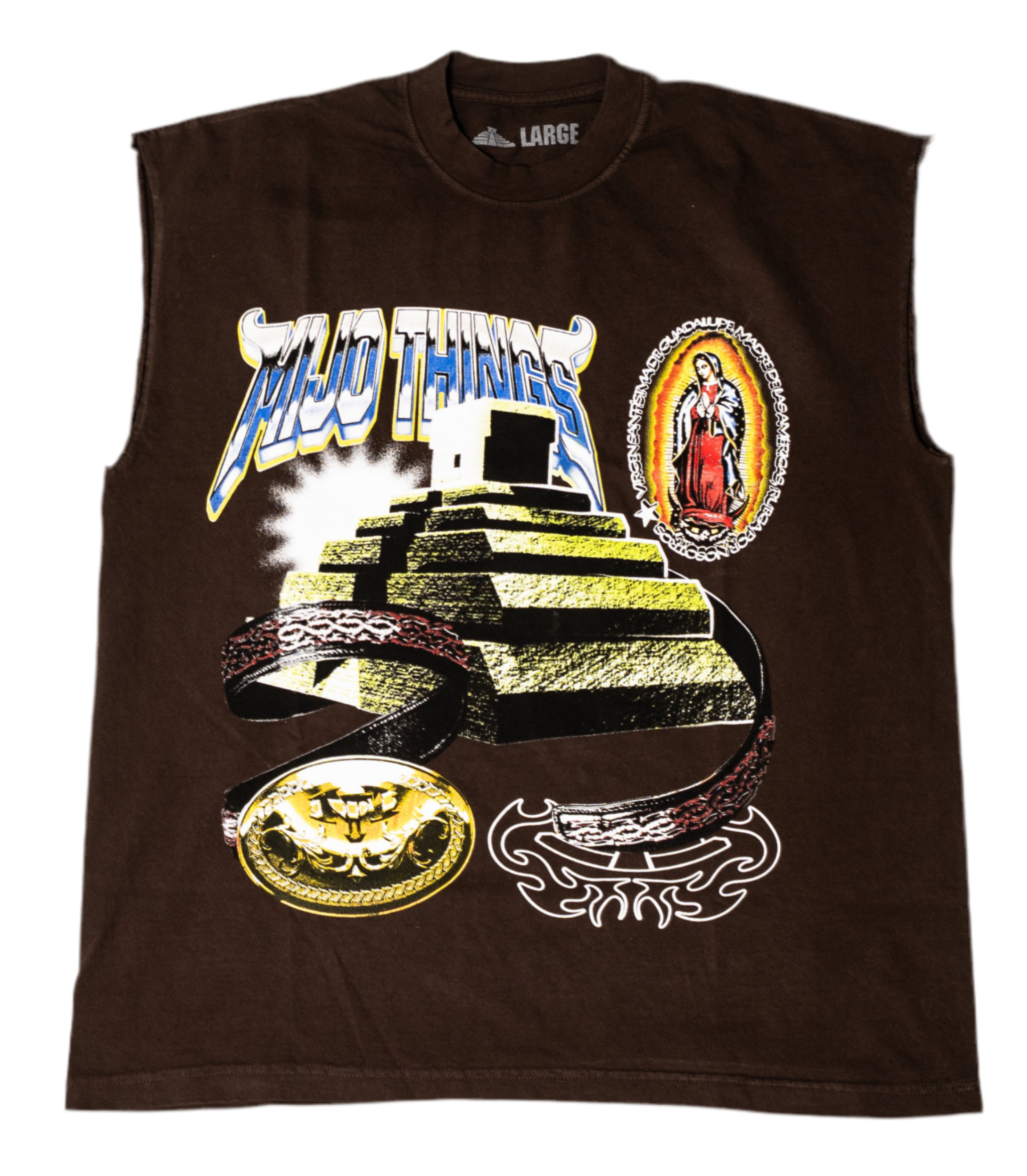 This tee tells our story — from ancient pyramids built by our ancestors to the strength of modern cultura. The front features symbols of heritage: the Mesoamerican pyramid, La Virgen de Guadalupe, and a charro belt, all representing faith, roots, and resilience.