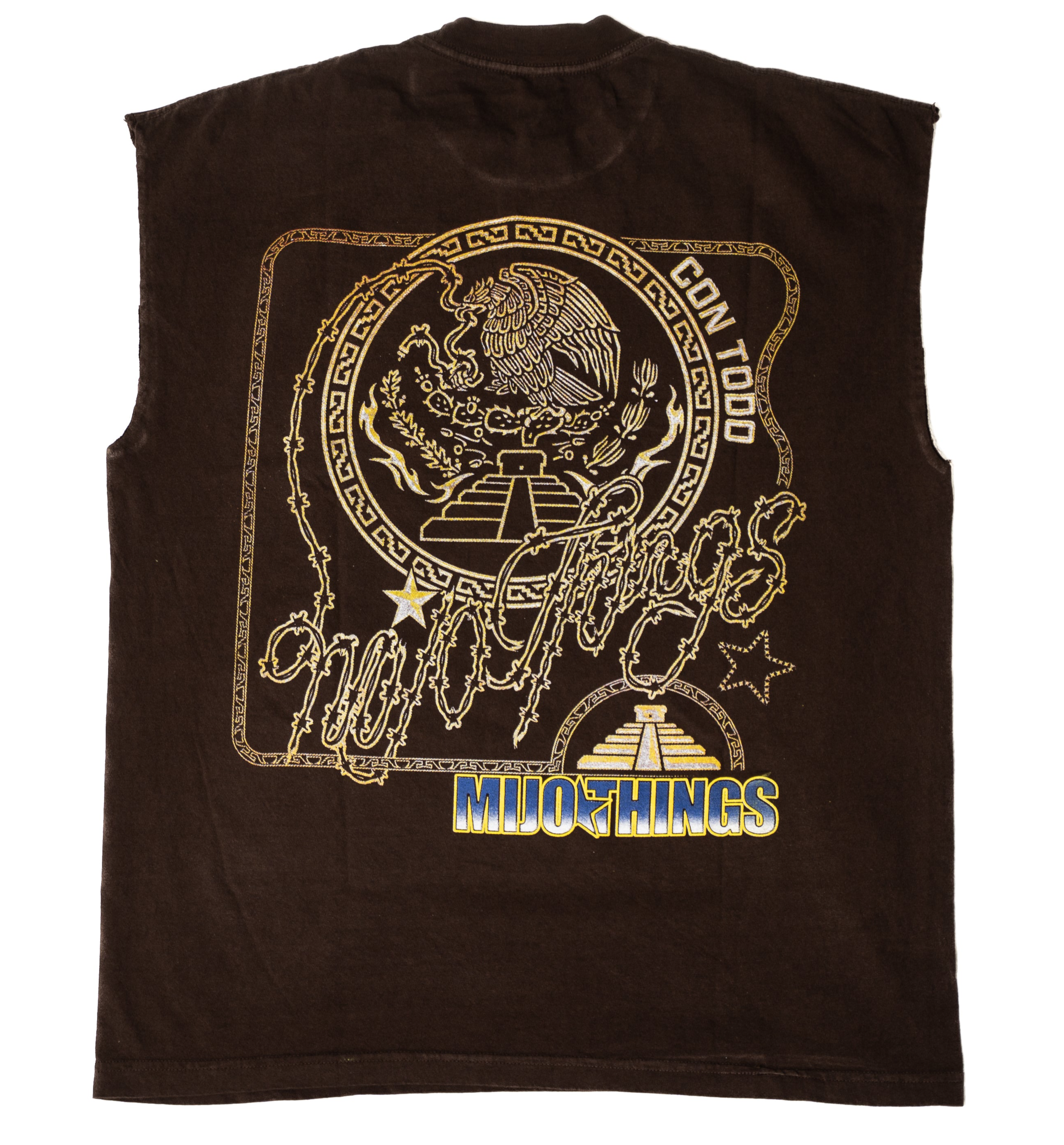 The back reimagines the Mexican seal with barbed wire and bold “Con Todo” energy — a reminder that we move through life with heart, hustle, and history.